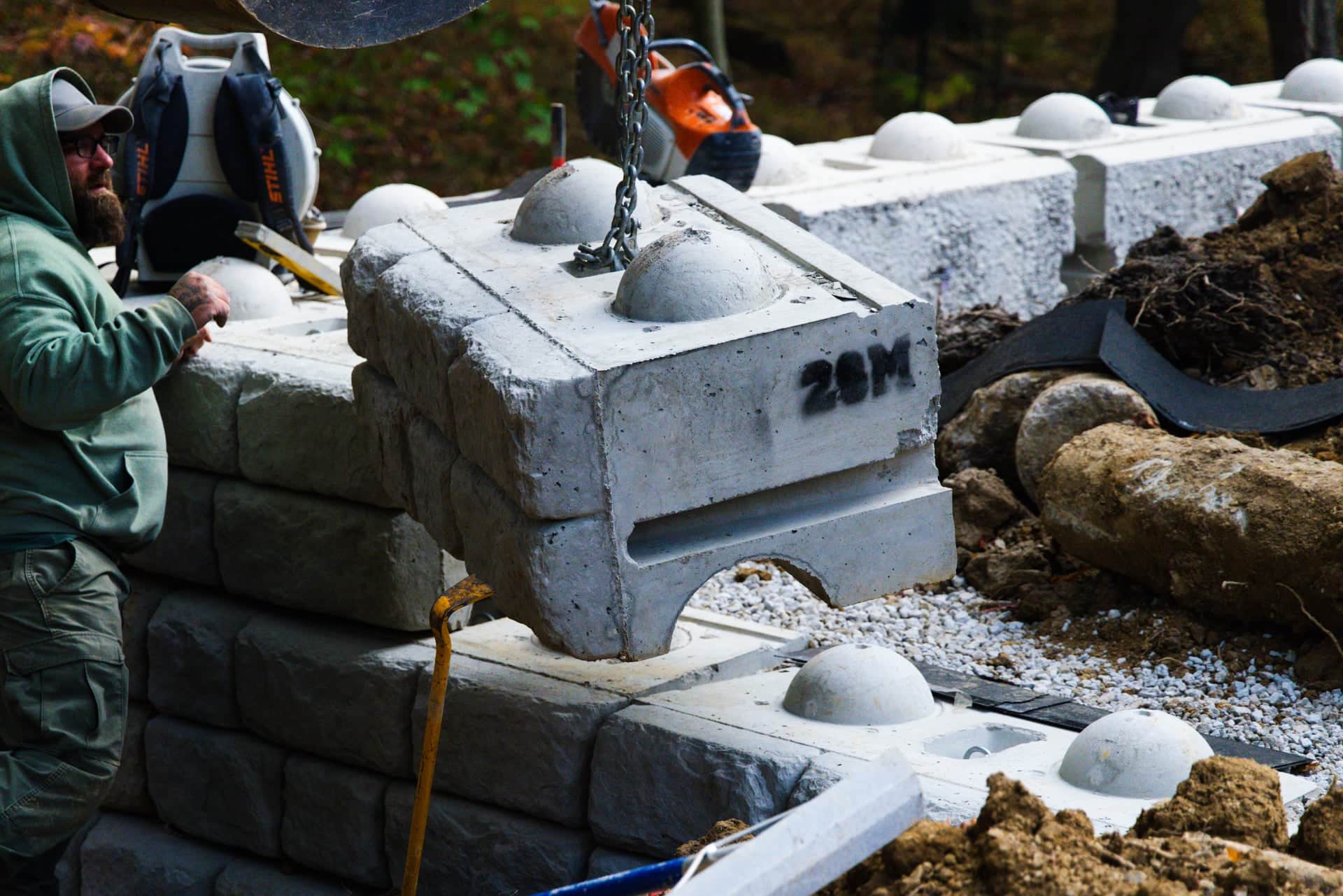 Bear Landscaping & Design recommended a Redi Rock wall system designed for large-scale structural applications. The project required: