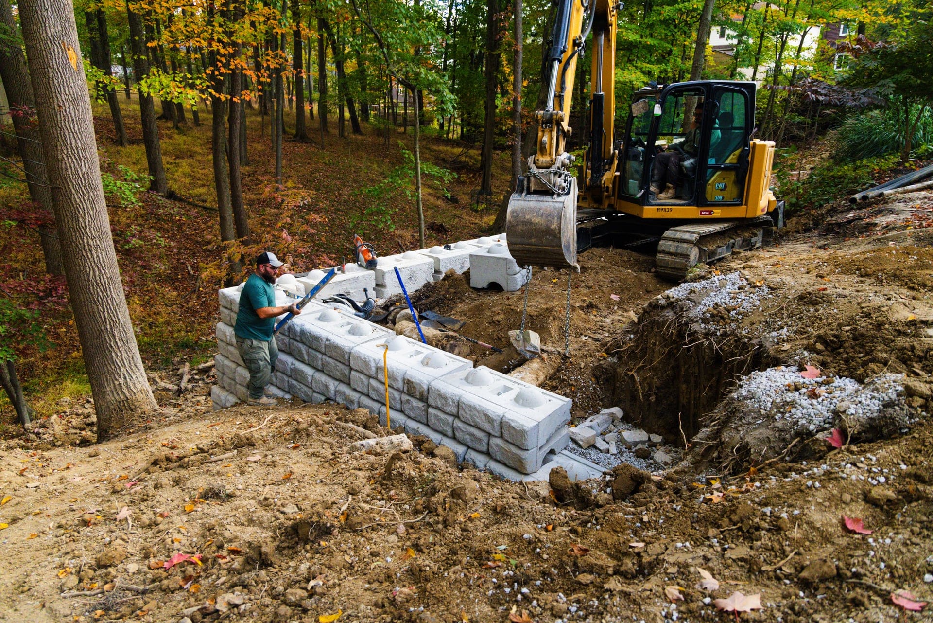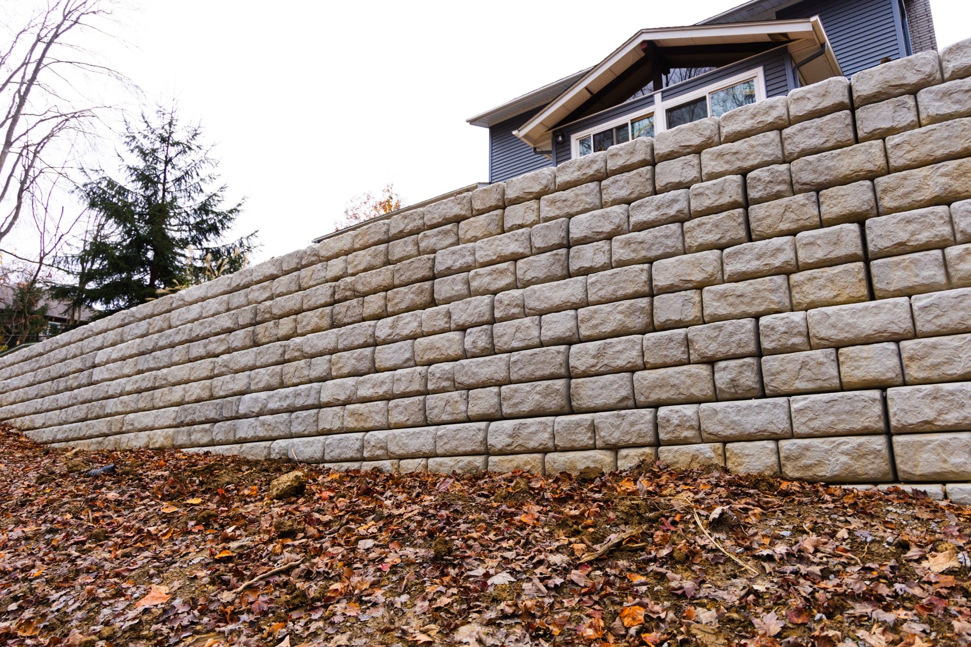 The completed Redi Rock retaining wall not only stabilized the slope but restored safety and confidence for the homeowner. The structure was designed to perform for decades while blending naturally into the property’s landscape.